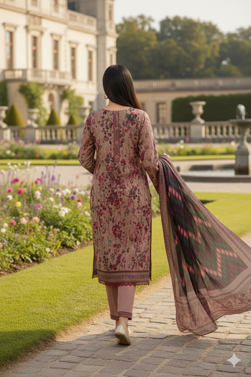 DESCRIPTION: THREE PIECE PRINTED UNSTITCHED PRINT CAMBRIC/COTTON DRESS.
